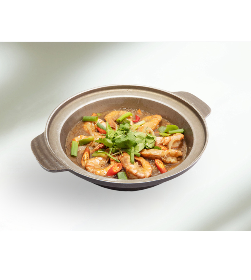 草蝦高溫油炸後與冬粉悶煮,鮮蝦口感Q彈、冬粉香氣十足。